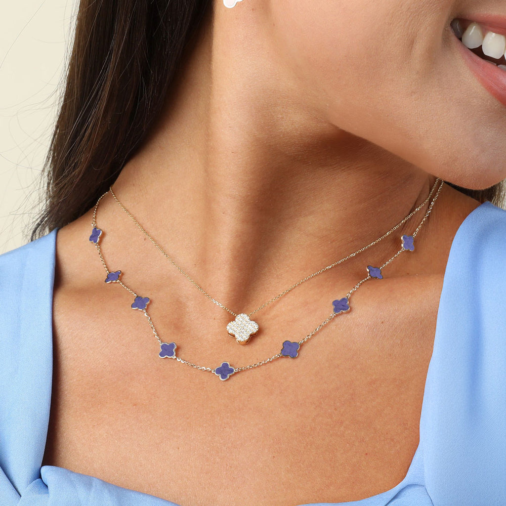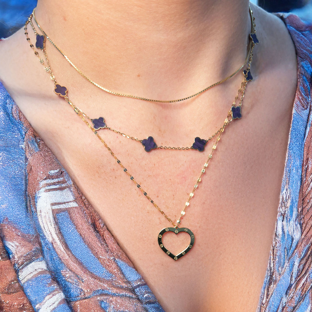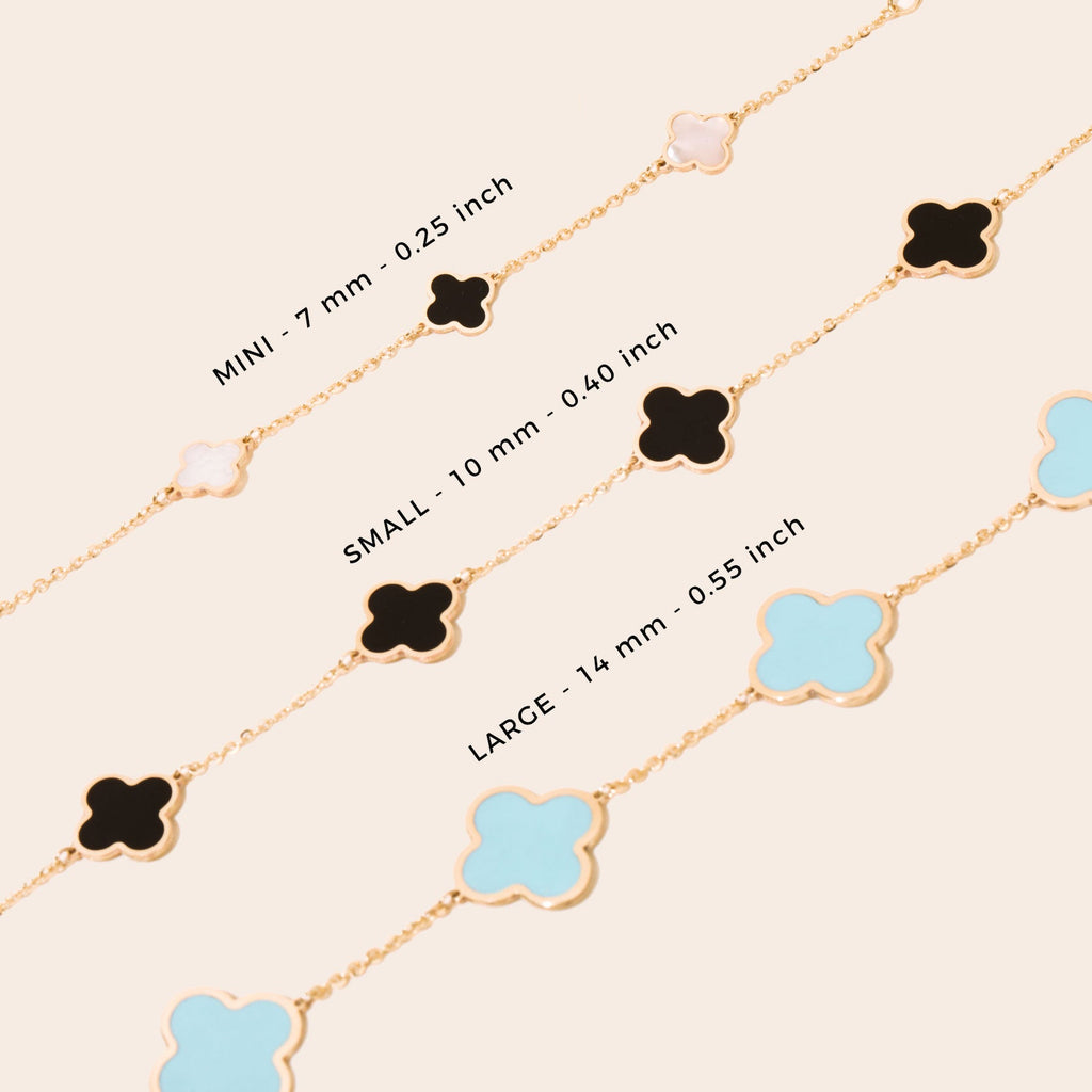 The clover necklace is our go-to piece to add to any look! Available in three sizes and tons of gemstone options. Dress it up with a cocktail dress and heels, or dress it down with your comfiest loungewear. Either way, you'll be classic chic!