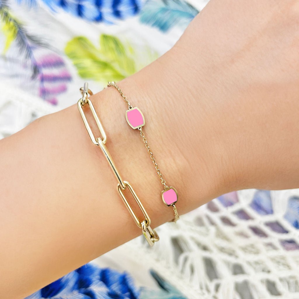 The icon bracelet is our new go-to piece to style, creating a fun and chic look!