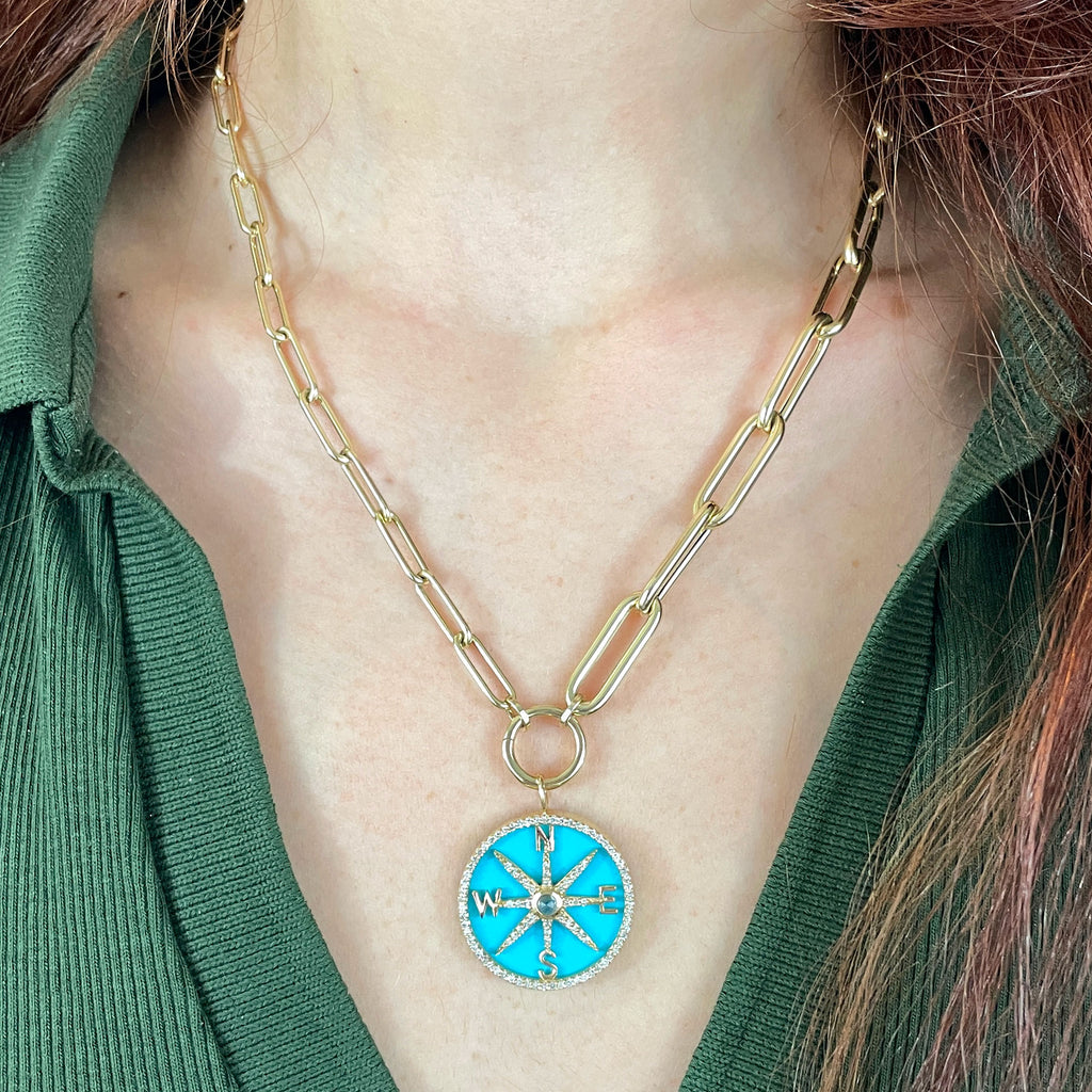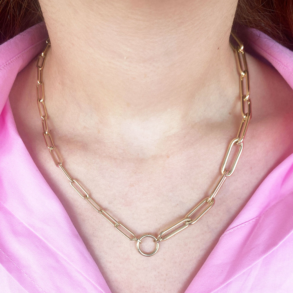 This necklace puts a twist on the classic paperclip! The round centerpiece can be opened and used to hang charms!