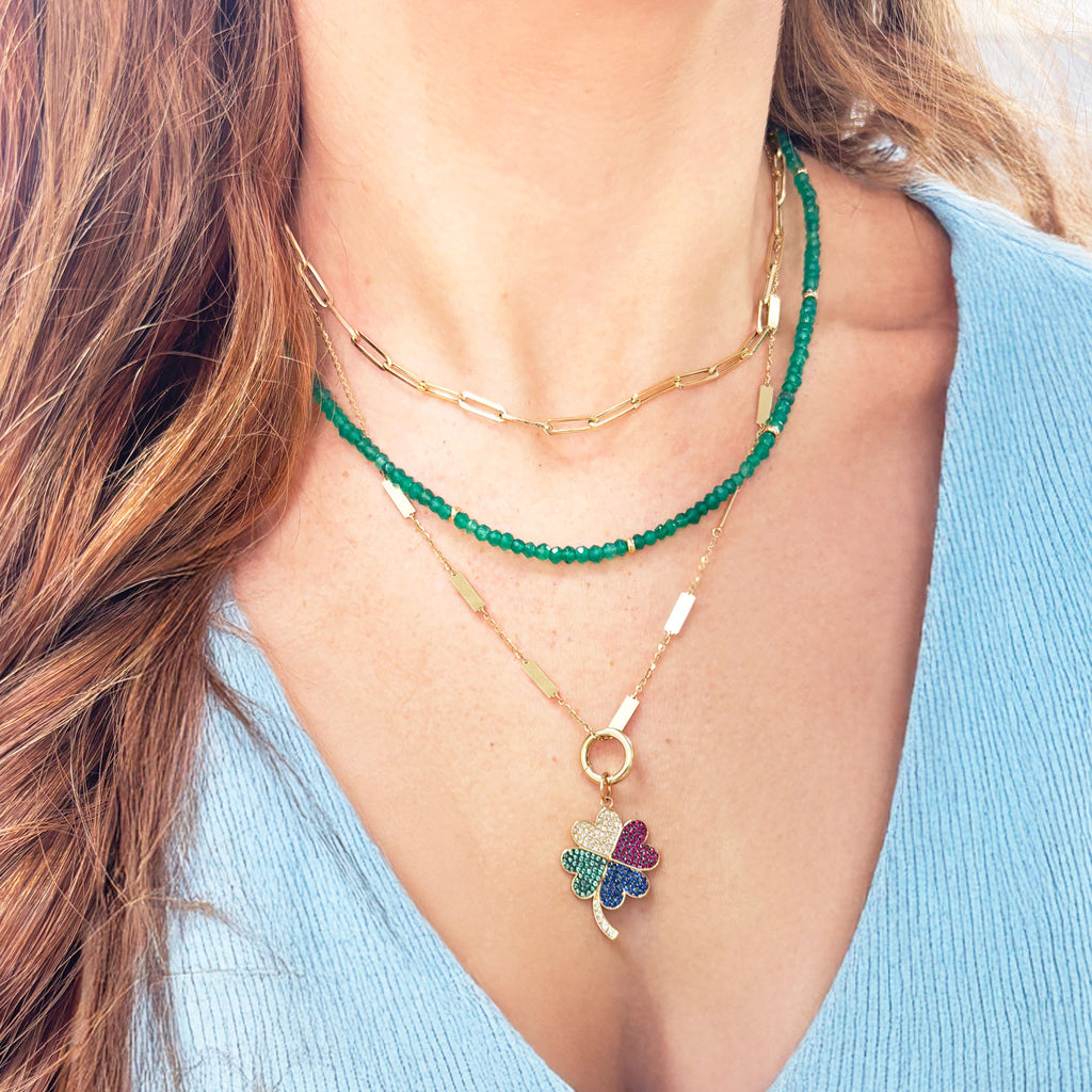 Rainbow Gemstone and Diamond Lucky Clover Charm
