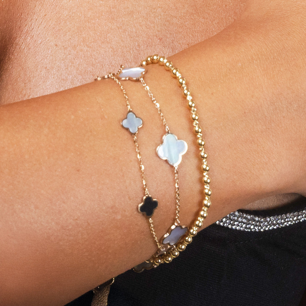 The clover bracelet is our go-to piece to add to any look! Available in several sizes and tons of gemstone options. Dress it up with a cocktail dress and heels, or dress it down with your comfiest loungewear. Either way, you'll be classic chic!