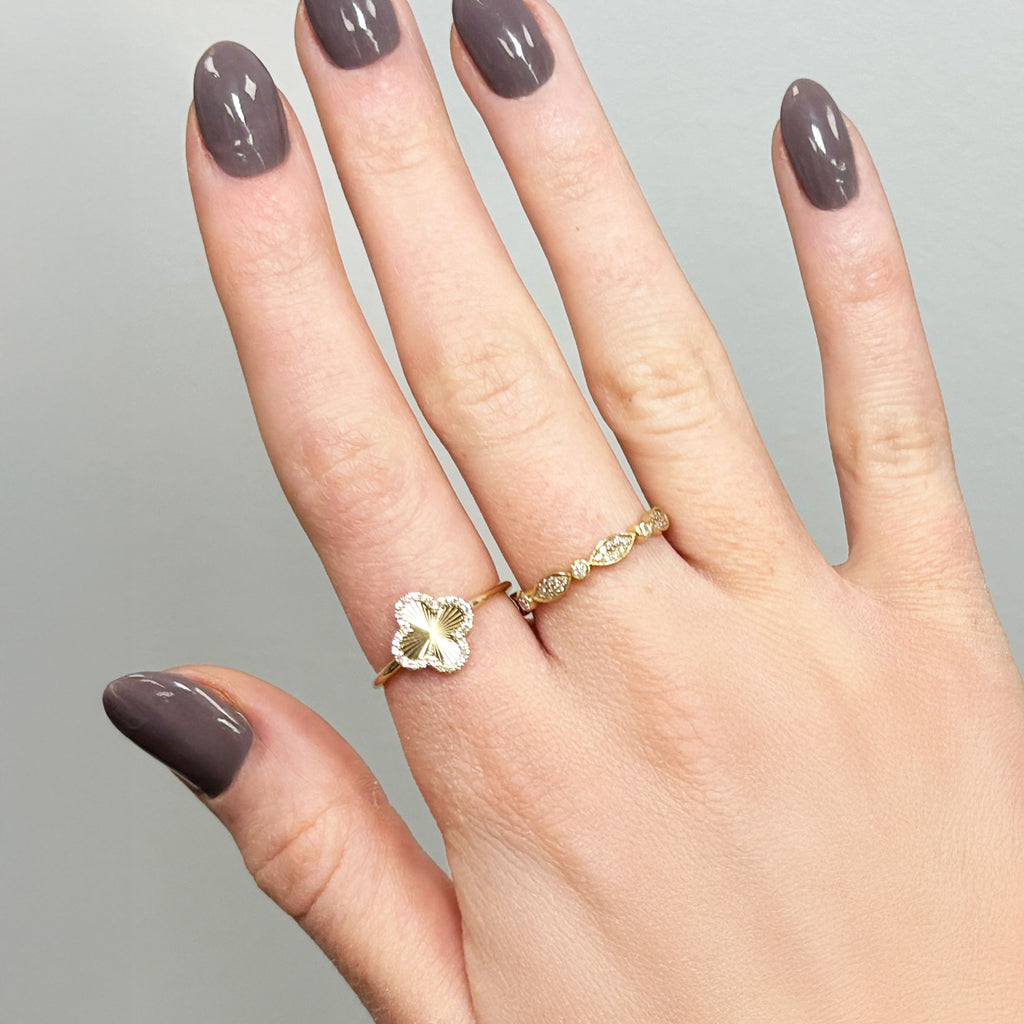 Fluted Gold Diamond Clover Ring