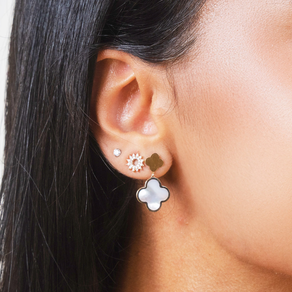 These new clover drop earrings are a fun spin on our popular clover studs! In our highly requested extra large size, and with the perfect addition of the mini gold clover, these earrings are the perfect statement piece! Dress it up with a cocktail dress heels, or dress it down with your comfiest loungewear. Either way, you'll be classic chic!