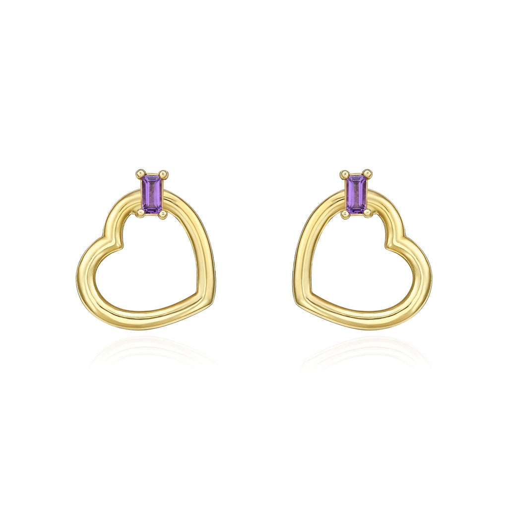 Elevate your style with our Baguette Amethyst Open Heart Earrings. Also the perfect birthstone piece for a February baby!