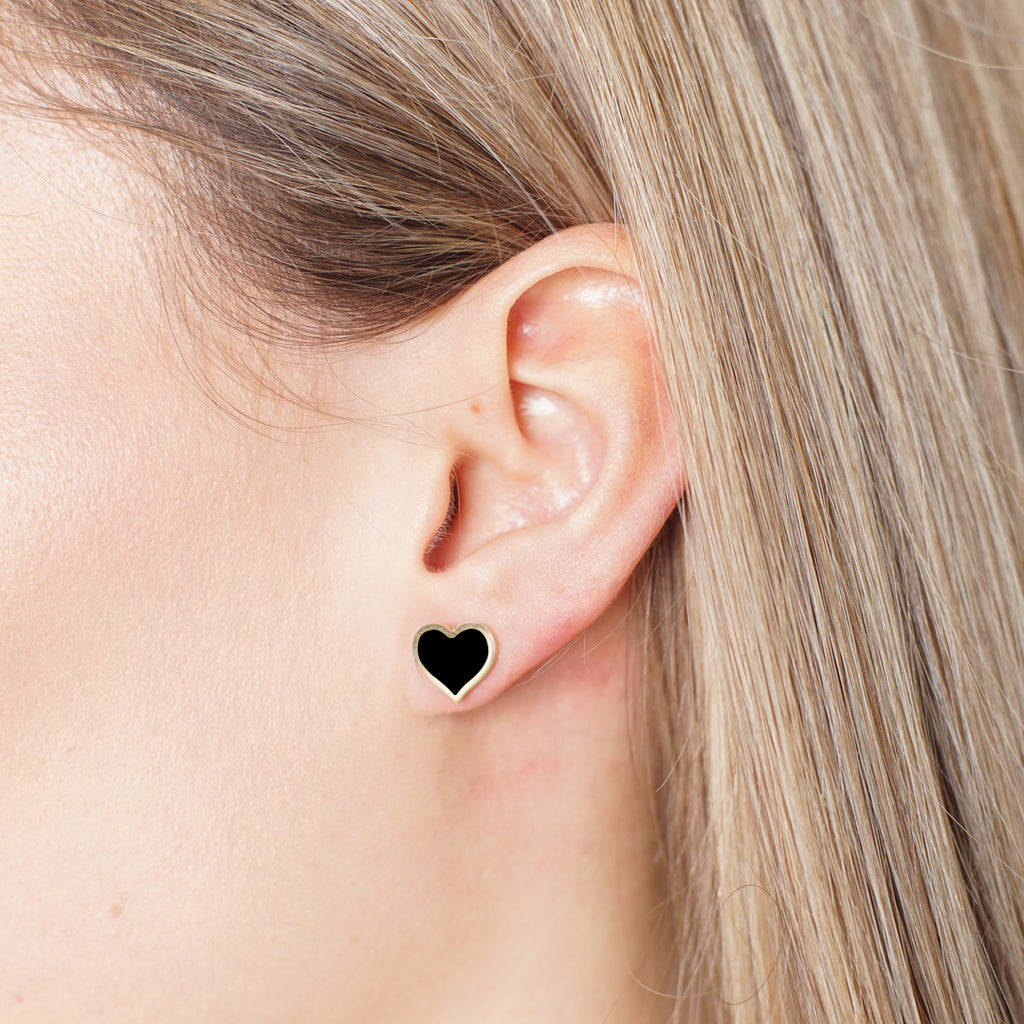 Large Onyx Heart Stud Earrings