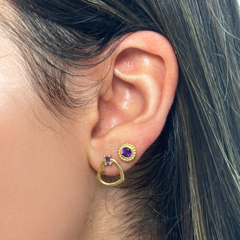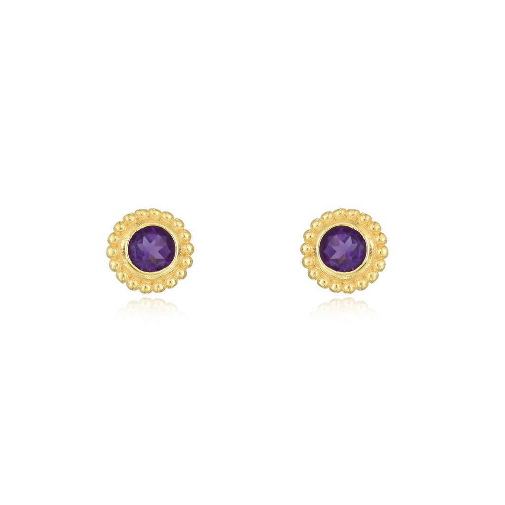 Amethyst Bezel Beaded Stud Earrings