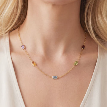 Rainbow Gemstone Paperclip Necklace