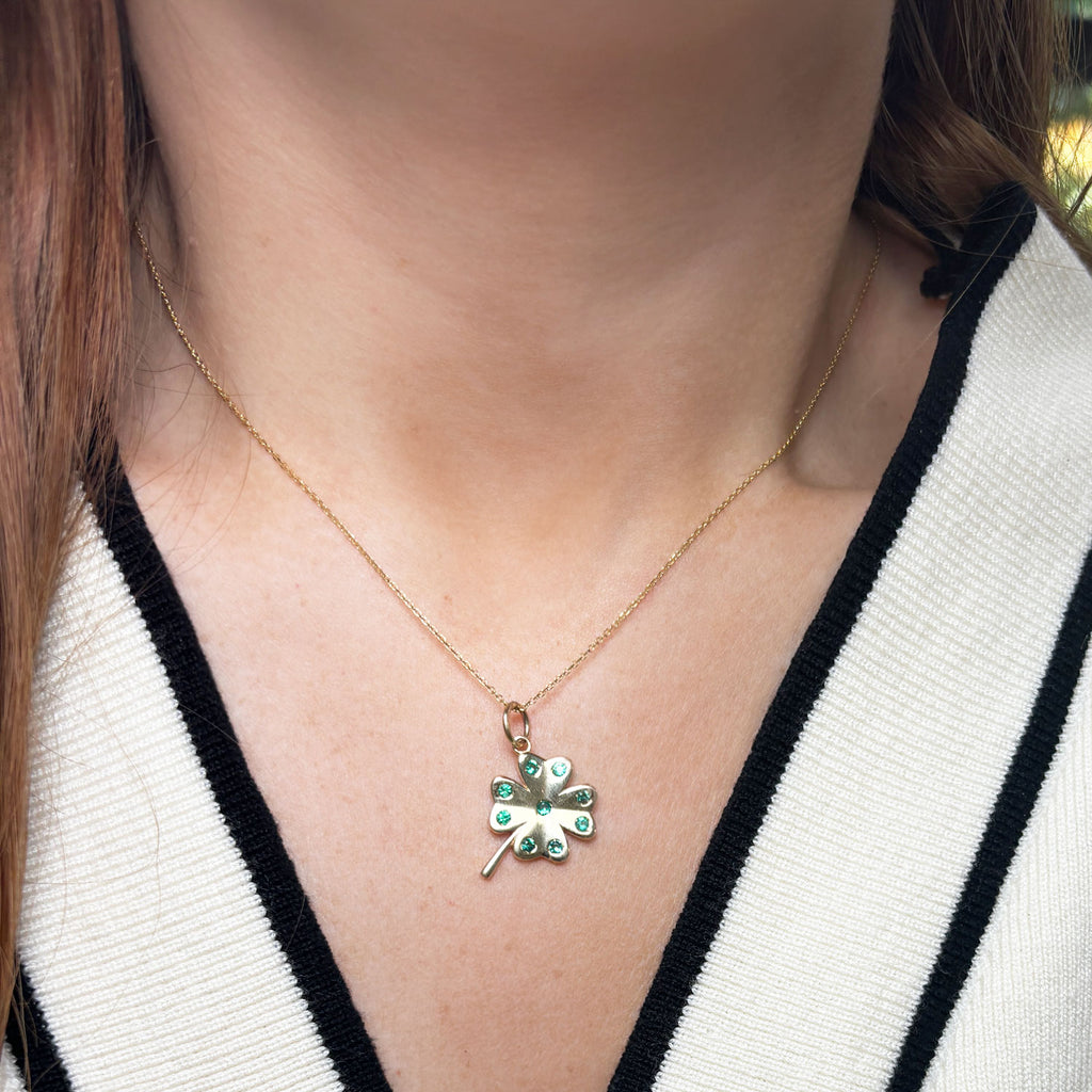 This Emerald Clover Charm is the most gorgeous addition to any chain!