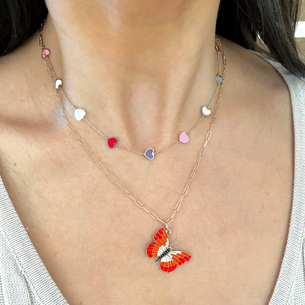 Our hearts are bursting for this colorful heart necklace! Available in a variety of colors.