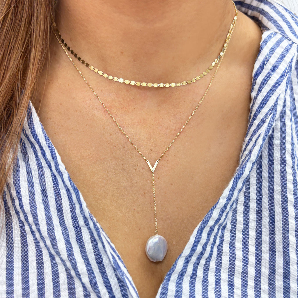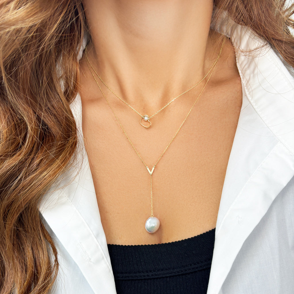 A unique pearl necklace to add to your collection! Match it with our Pearl Drop Dangle Earrings!