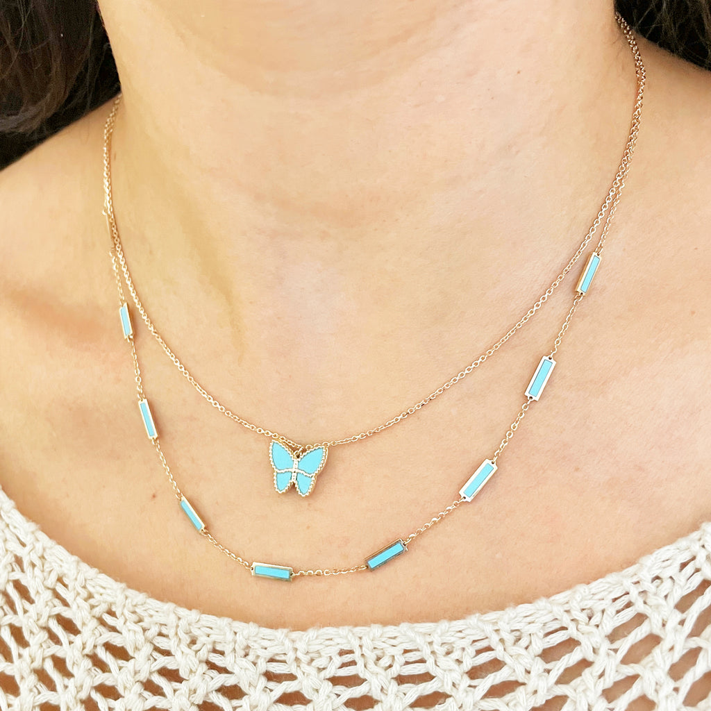 Make this butterfly necklace your lucky charm! With a beaded gold border on one side, and polished gold on the other side, you get two looks in one!