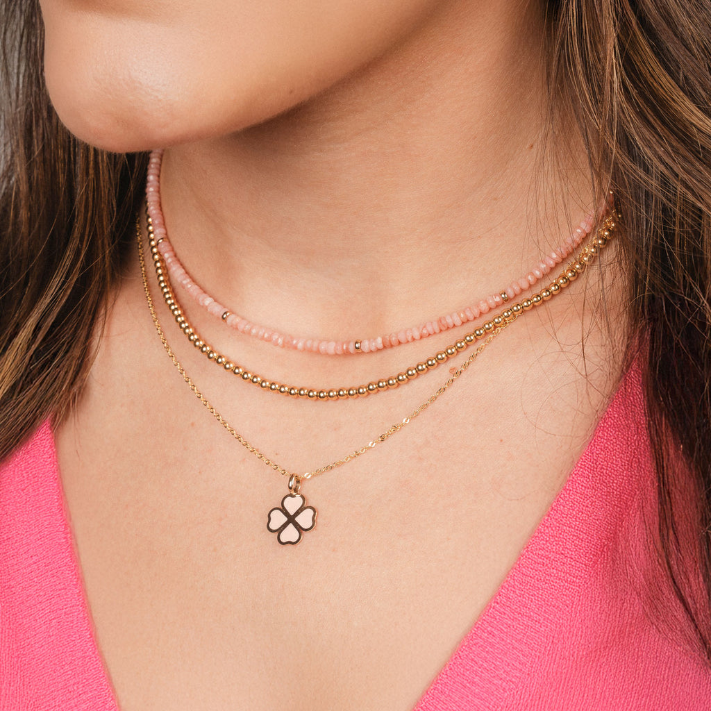 This bead necklace is effortlessly stylish and perfect for everyday wear. The natural gemstone beads add a touch of color and elegance to any outfit.