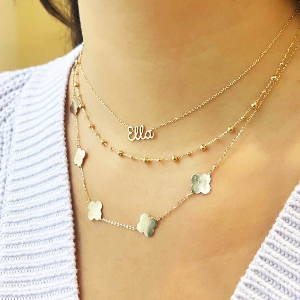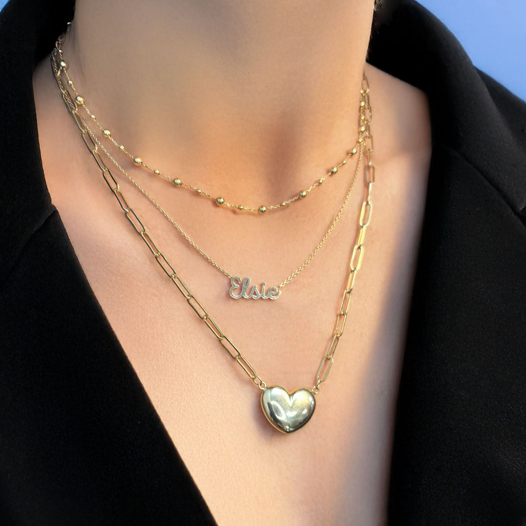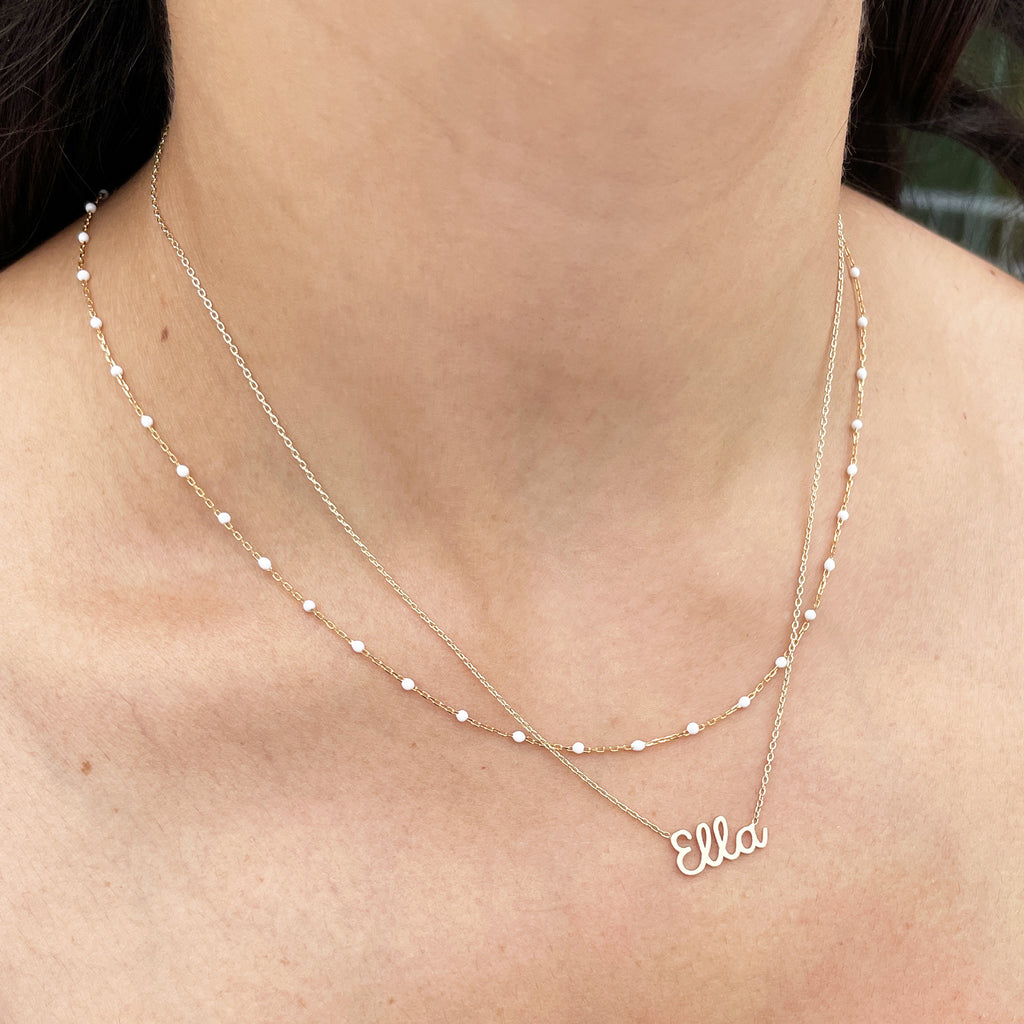 Personalize your necklace layers with this gold script name necklace! If you like our initial jewelry and custom name bracelets, you will love this personalized name necklace! Custom-made from 14k gold! It is the ultimate piece to complete your necklace layer.