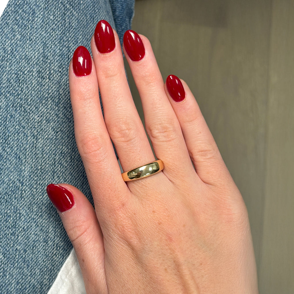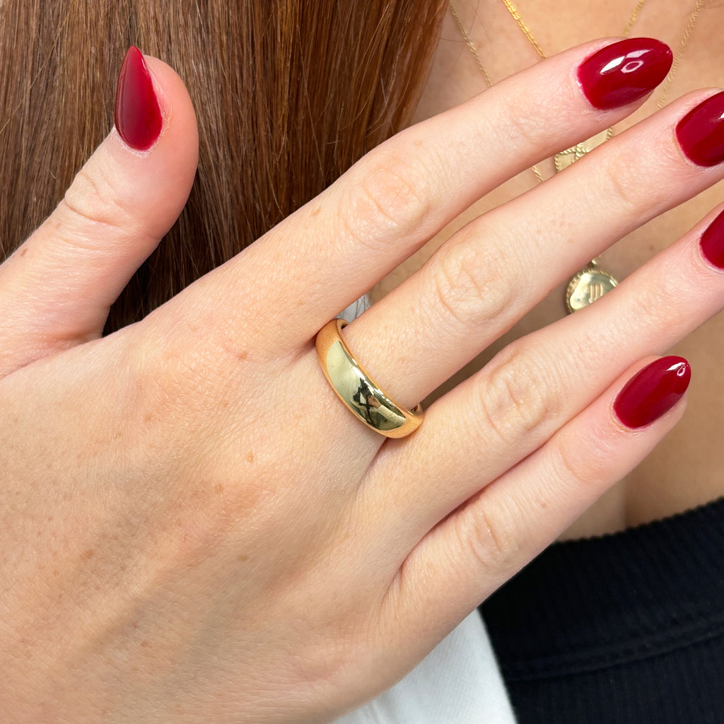 Add a classic to your ring collection with this simple gold band! Perfect for stacking.
