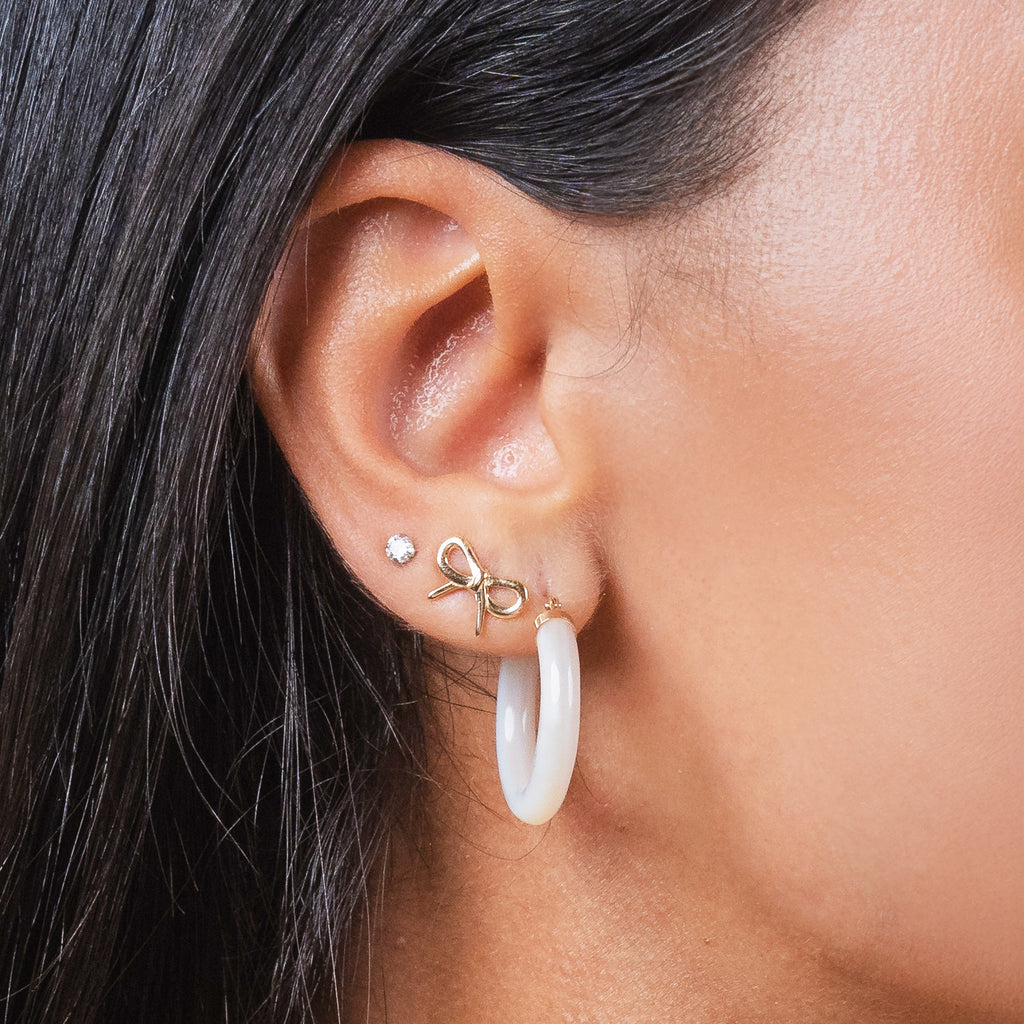 Tie your look together with these adorable gold bow studs! A playful yet elegant touch for any outfit.